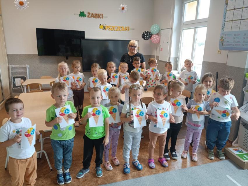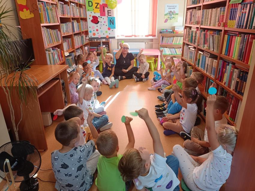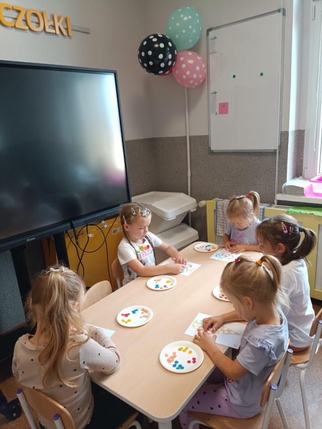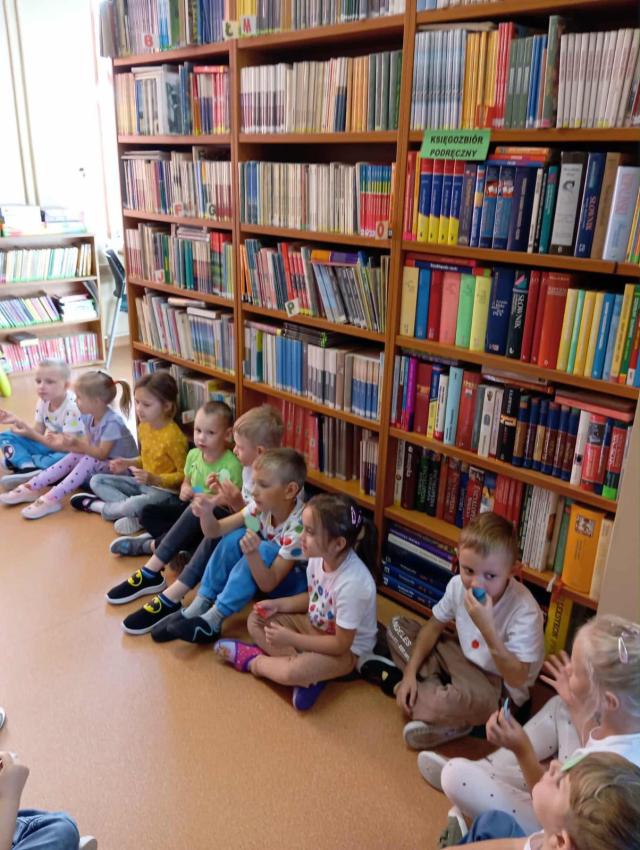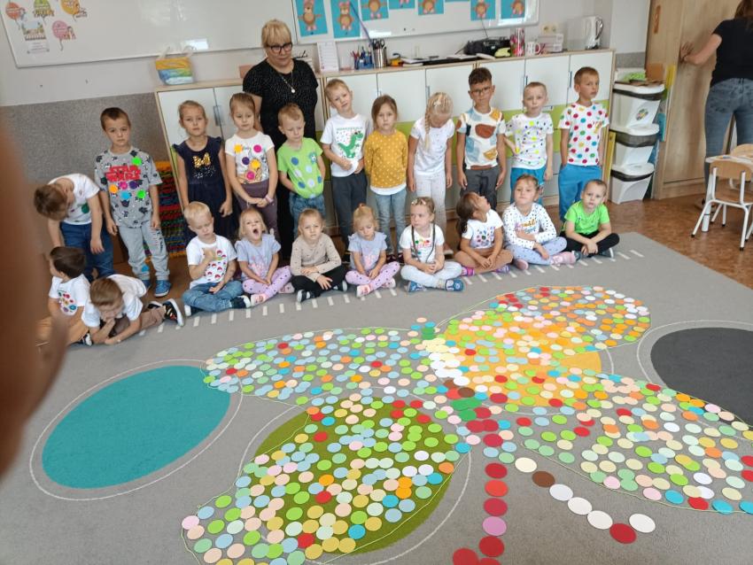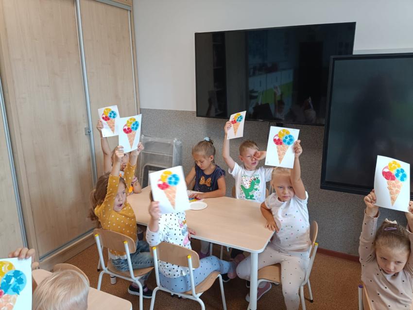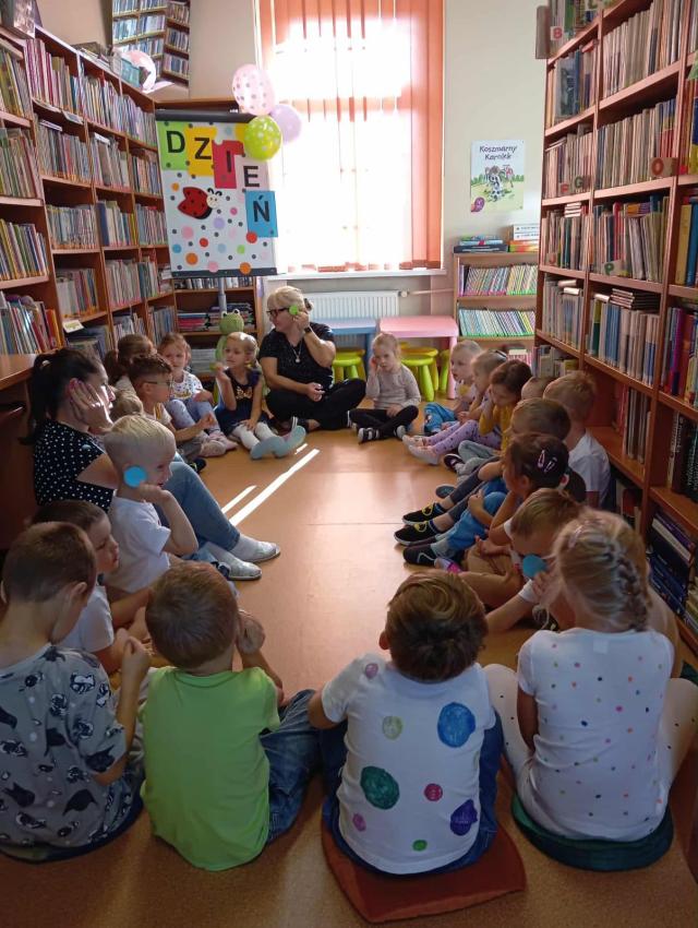 Przedszkolaki wysłuchały w Bibliotece opowiadania o Zaczarowanej Kropce, śpiewały i bawiły się przy piosence "Podajemy kropki", wykonały z kolorowych kropek lody a na koniec z papierowych kropek wspólnie ułożyły pięknego motyla. Był to dzień pełen wrażeń i pozytywnych emocji.