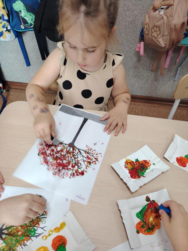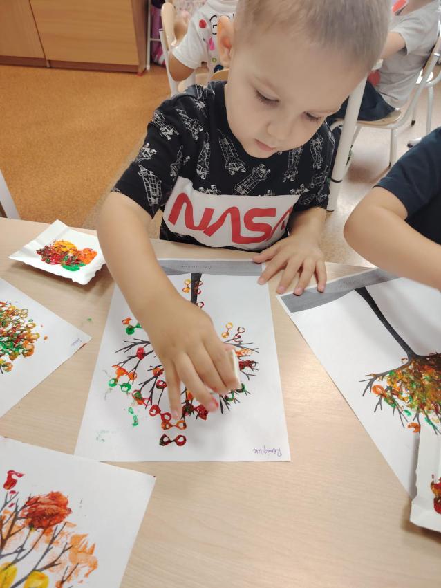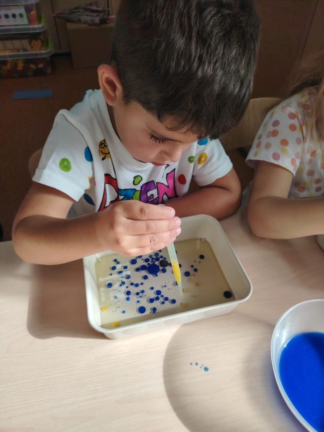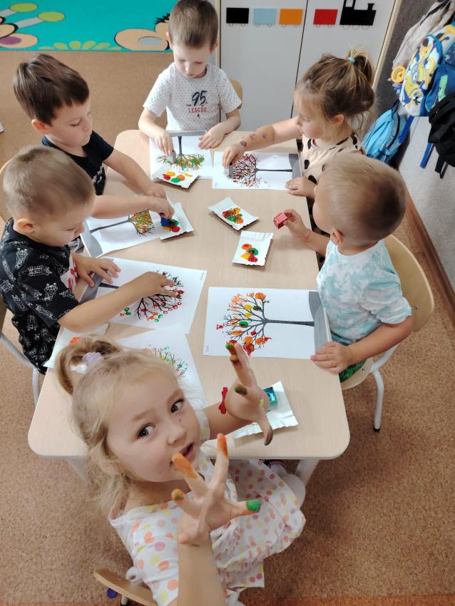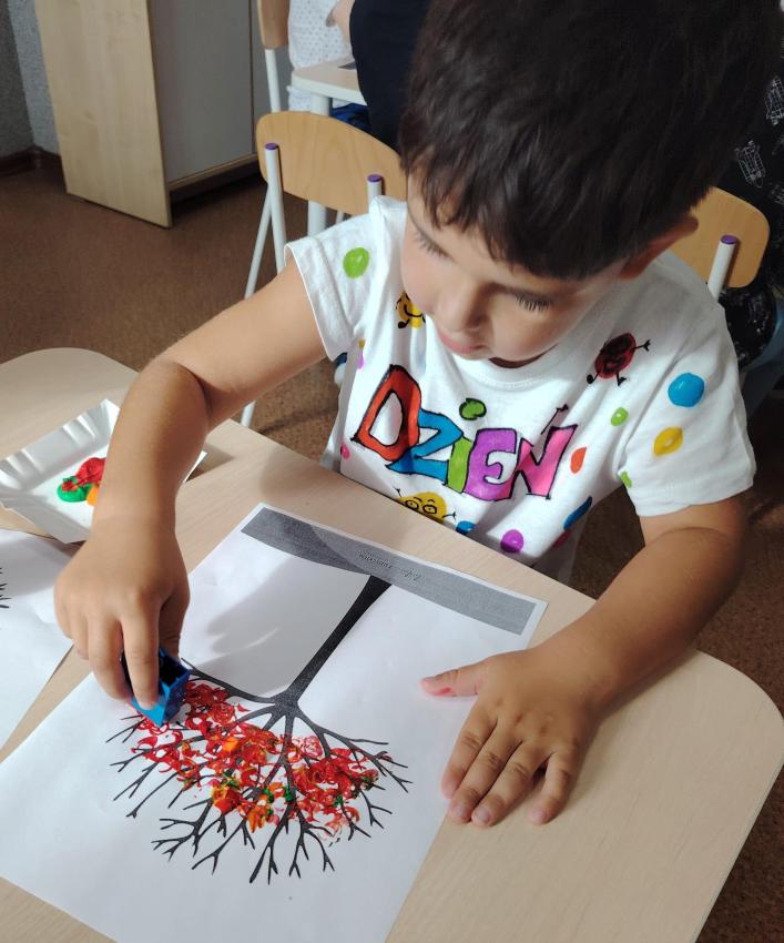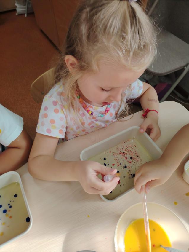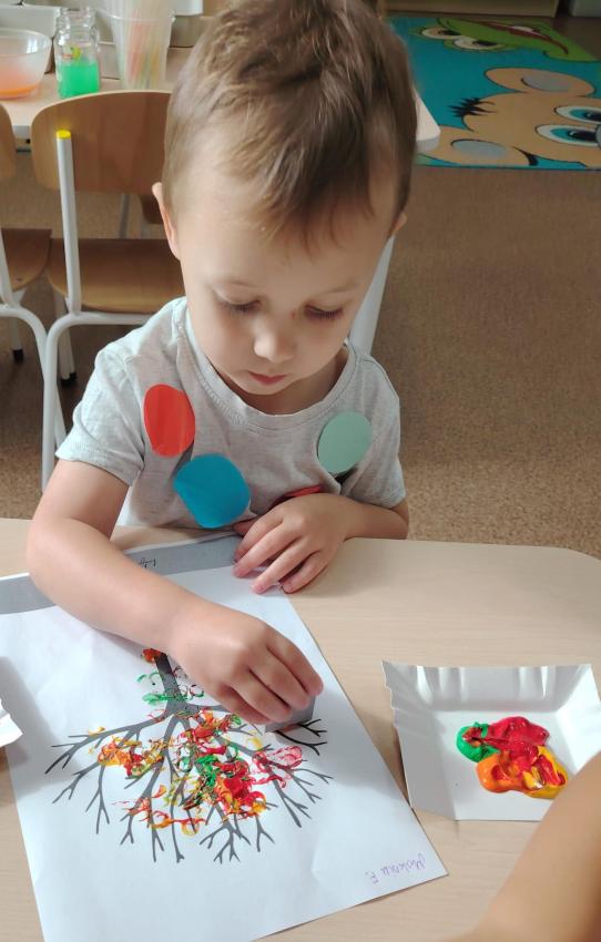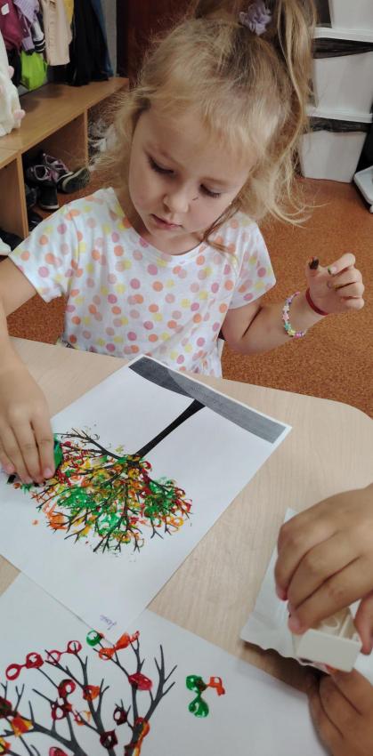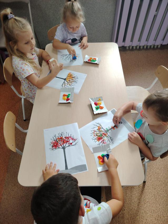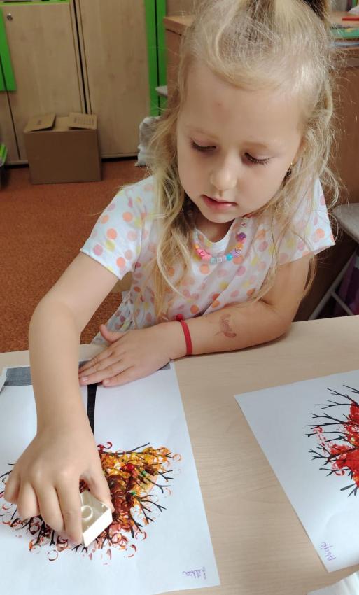 Maluszki z zaciekawieniem wykonały kropkowy eksperyment oraz wykropkowały drzewo przy użyciu klocków Lego