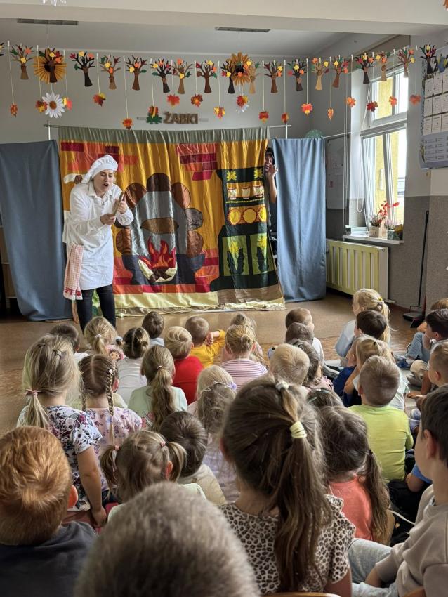 23.09.2025 R. nasze przedszkole odwiedził teatrzyk Herbi z Leszna z pięknym przedstawieniem pt. ?Stoliku, nakryj się?. Dzieci mogły przenieść się w baśniowy świat pełen magii, humoru i mądrych przesłań.