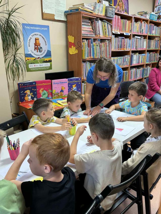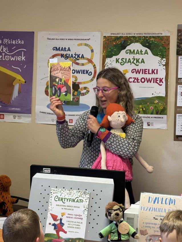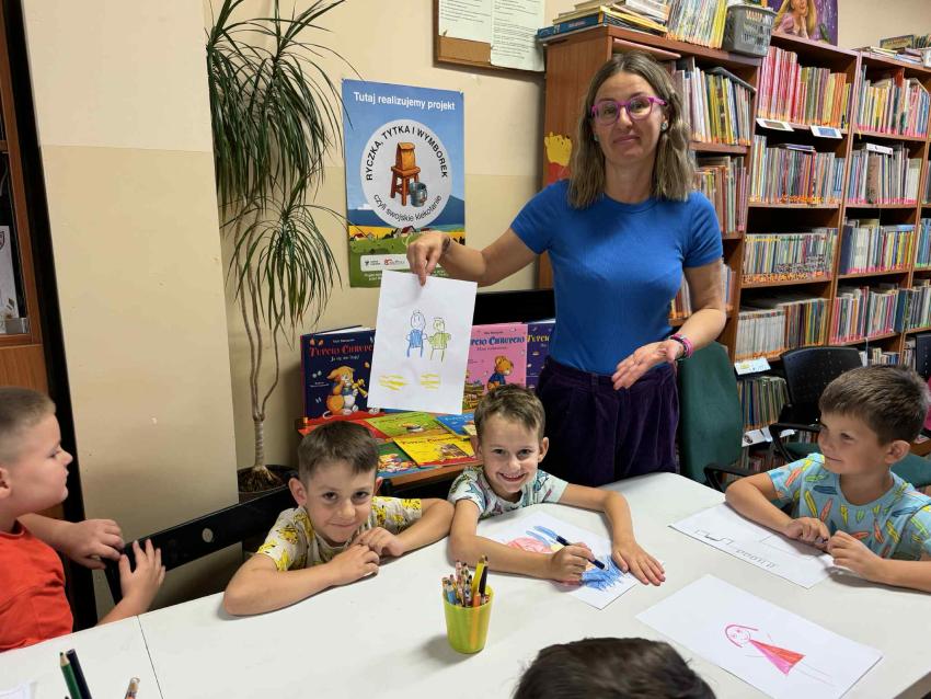 Dzisiaj grupa ?Motylki? miała wyjątkowe spotkanie z pisarką i ilustratorką Elizą Piotrowską, autorką wielu uwielbianych przez dzieci książek, m.in. serii o Cioci Jadzi. Autorka opowiadała o swojej pracy, o tym, skąd czerpie pomysły na książki i jak wygląda proces tworzenia ilustracji. Dzieci z dużym zainteresowaniem słuchały historii o bohaterach jej książek, a także zadawały mnóstwo pytań. Nie zabrakło wspólnego czytania, warsztatów, śmiechu i inspirujących rozmów o wyobraźni i marzeniach.