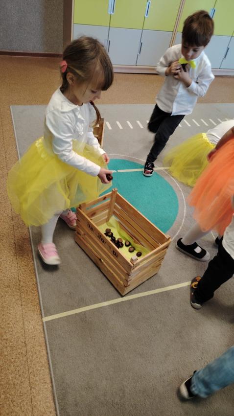 Wykonały ćwiczenia zwinnosciowe, segregowaly dary jesieni oraz zatańczyly do piosenek.