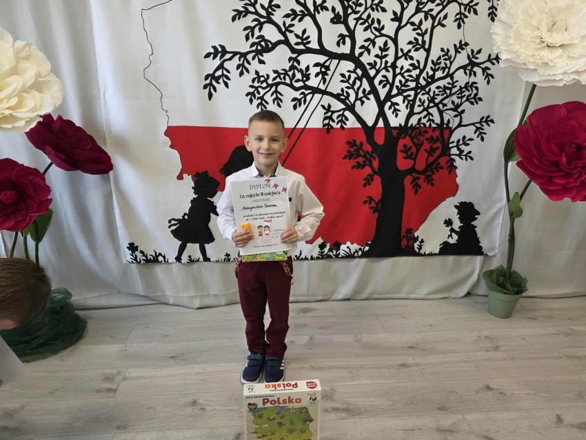 Maksymilian Paterka, który zaprezentował wiersz Wandy Chotomskiej ?Twój dom? i zdobył II miejsce!