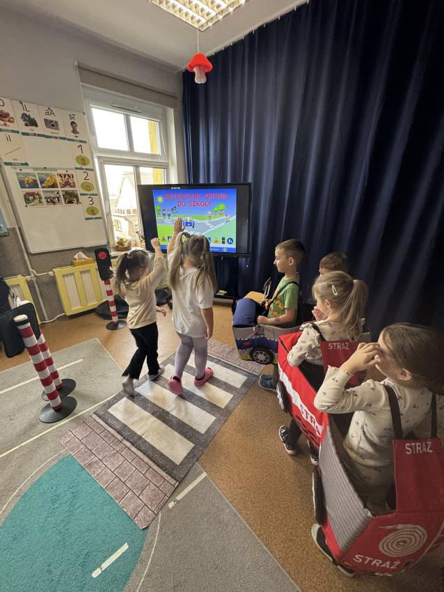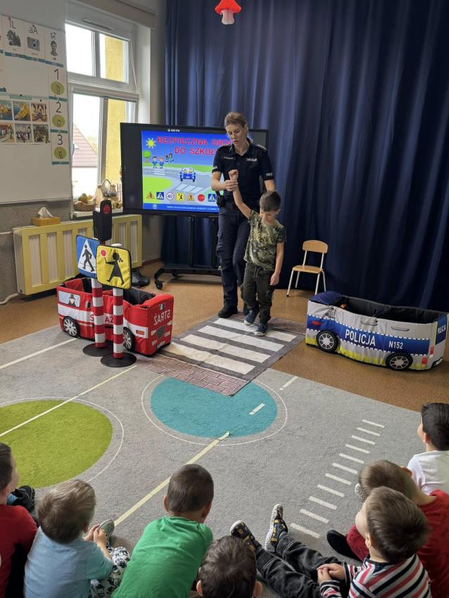 Podczas spotkania policjanci opowiadali nam o zasadach bezpiecznego poruszania się po drodze, jak prawidłowo przechodzić przez pasy