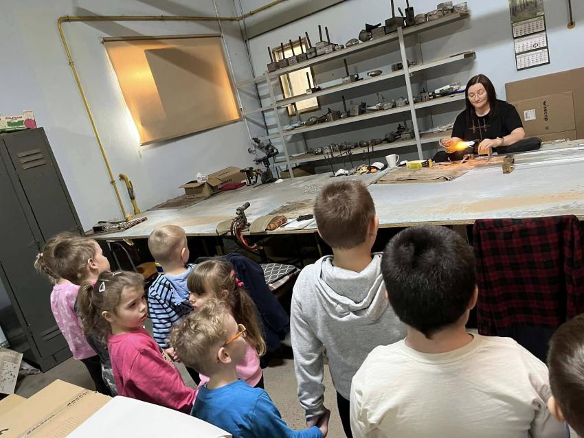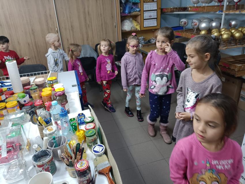 Dzieci z ogromnym zainteresowaniem zwiedziły fabrykę, zobaczyły jak powstają piękne, kolorowe bombki, a następnie wzięły udział w warsztatach ozdabiania własnych bombek. ??