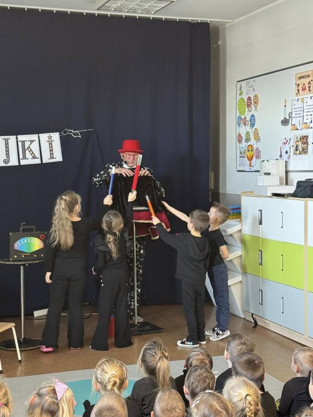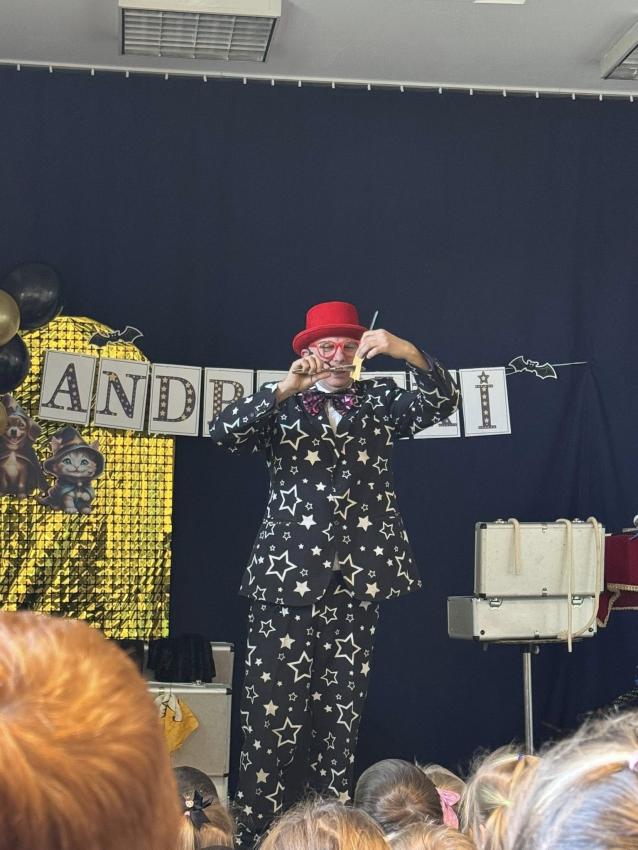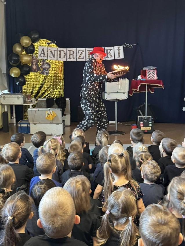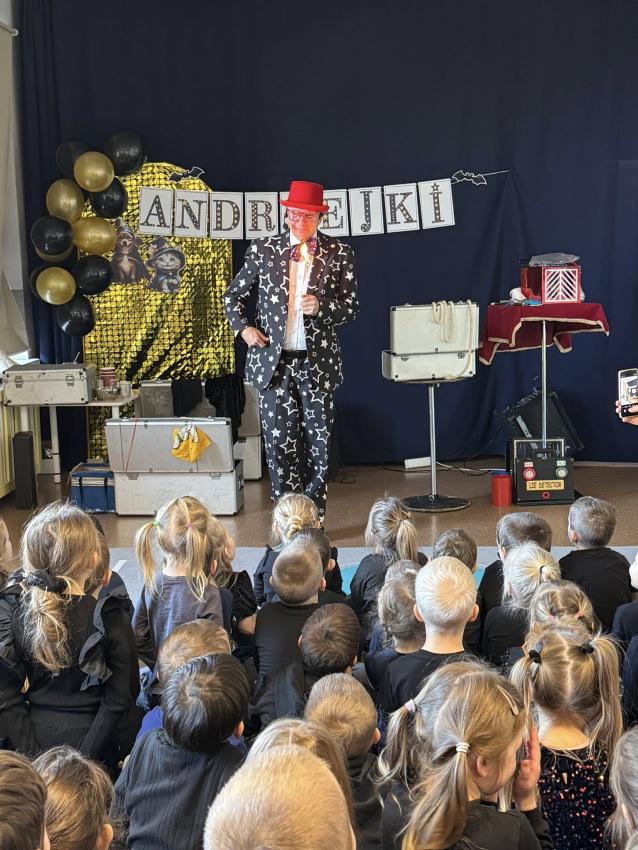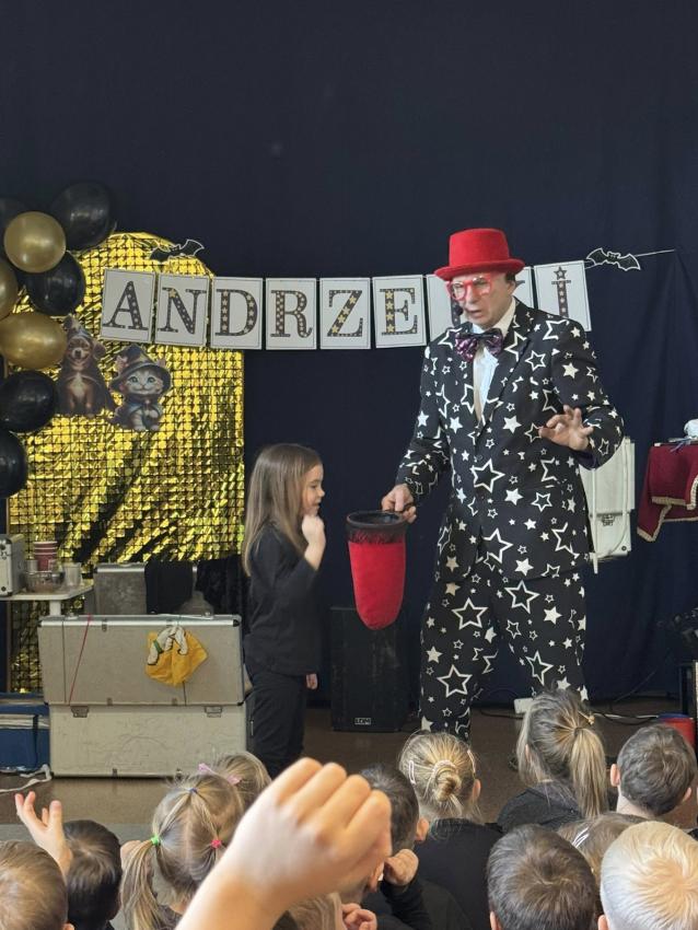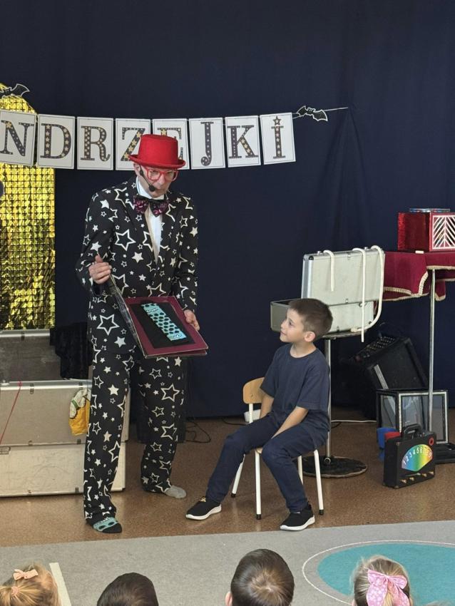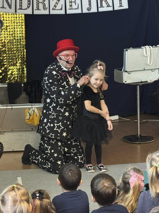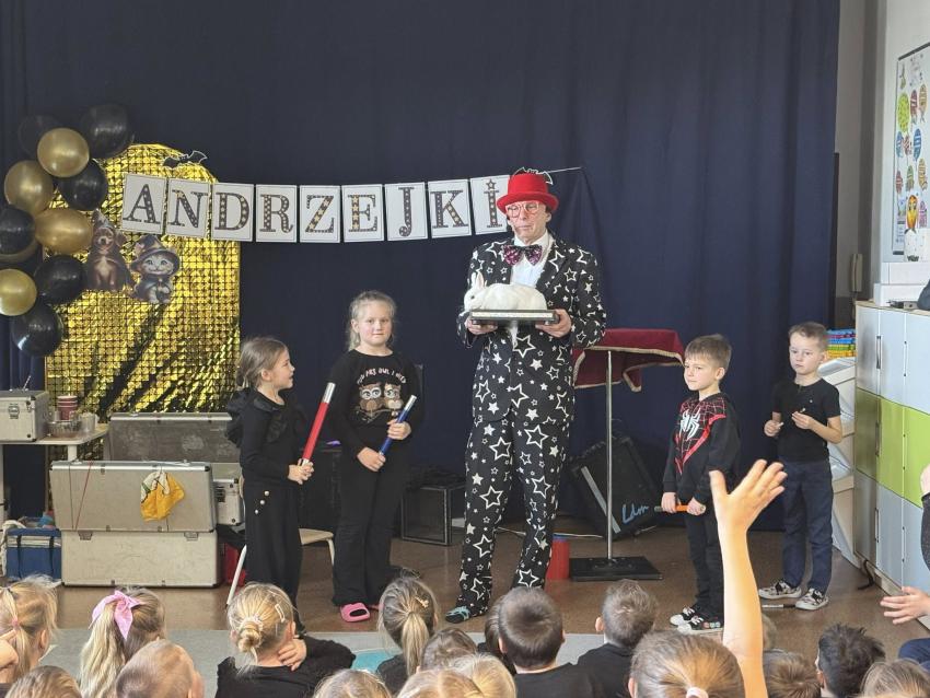 W naszym przedszkolu z okazji Andrzejek odwiedził nas wyjątkowy gość ? magik Pan Gwiazdeczka. Już od pierwszej chwili wprowadził magiczną atmosferę: opowiadał zabawne historie, robił sztuczki z kolorowymi chusteczkami, sprawiał, że przedmioty znikały i pojawiały się w najmniej oczekiwanych miejscach, a dzieci mogły pomagać mu w czarowaniu.