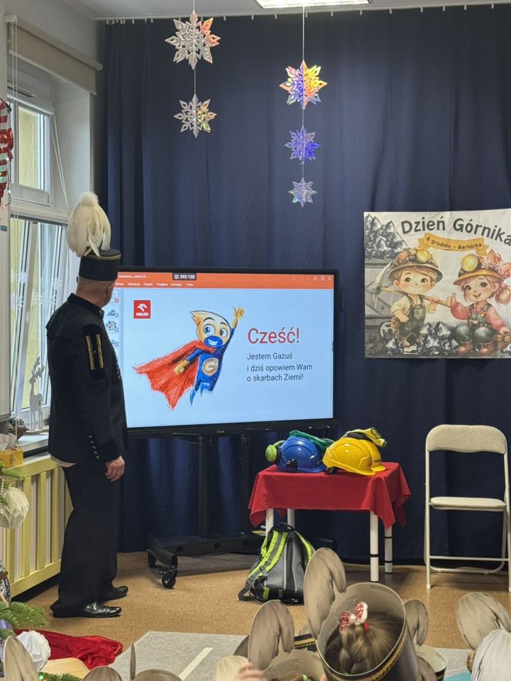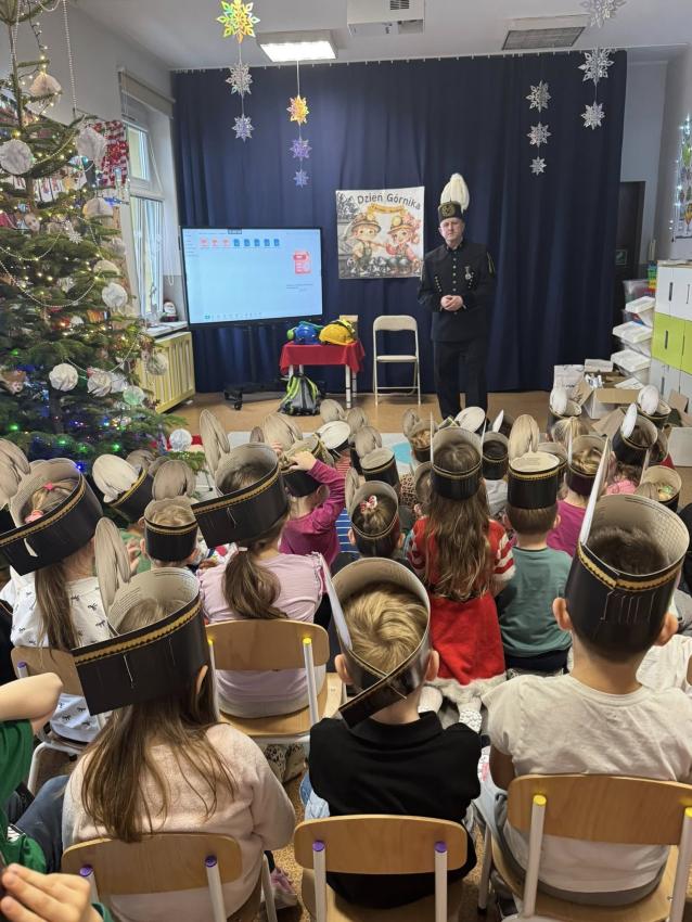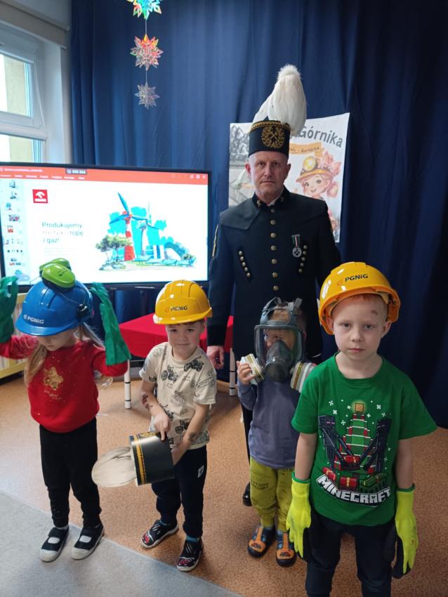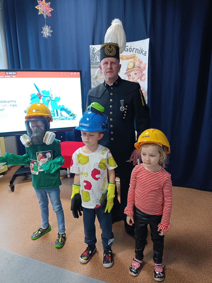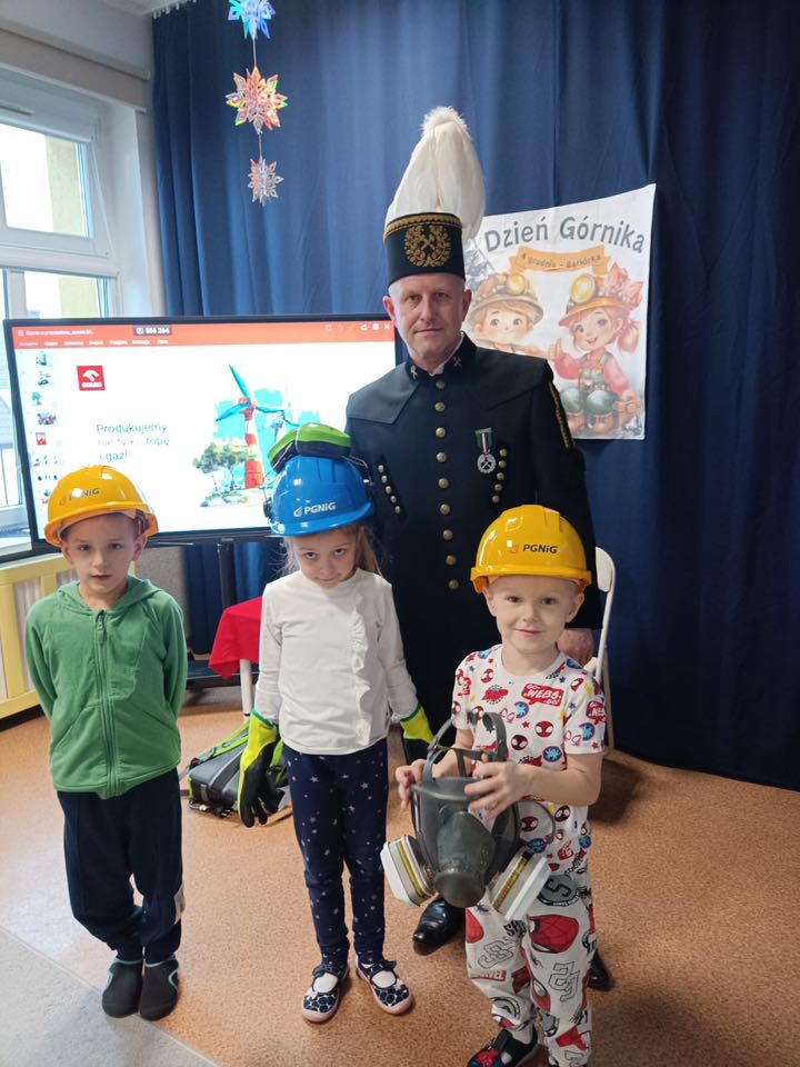 Nasze przedszkole odwiedził Pan Grzegorz Zając, górnik. Gość opowiedział dzieciom o swojej pracy pod ziemią, o specjalnych urządzeniach, z których korzysta, oraz o tym, jak ważne jest bezpieczeństwo w kopalni.