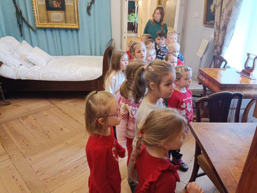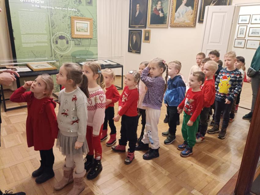 Grupa Żabki i grupa Motylki wybrały się na świąteczną wycieczkę do Śmiełowa, gdzie czekało na nas wiele ciekawych atrakcji. Odwiedziliśmy Muzeum Adama Mickiewicza, w którym poznaliśmy dawne zwyczaje świąteczne ? opowiadano nam, jak wyglądały przygotowania do Bożego Narodzenia w przeszłości, jakie tradycje były kultywowane w domach oraz jak świętowały rodziny wiele lat temu.
