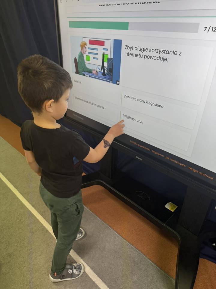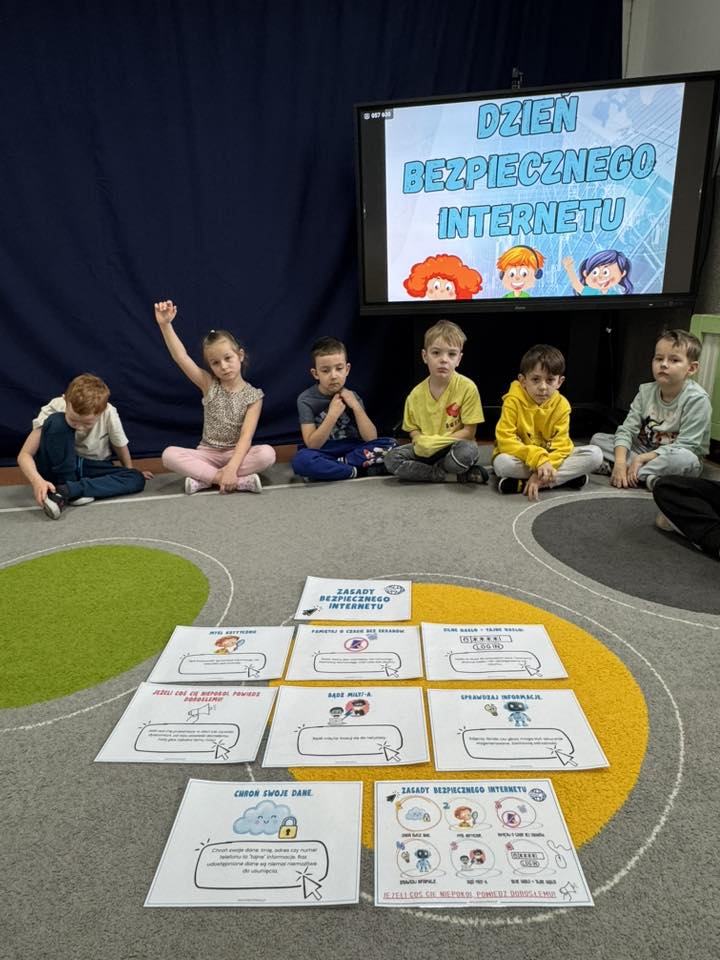 Poznaliśmy także zasady tworzenia bezpiecznych haseł. Dzieci chętnie uczestniczyły w zabawach i rozmowach, dzięki którym zrozumiały, że Internet może być świetnym miejscem do nauki i zabawy, ale tylko wtedy, gdy korzystamy z niego odpowiedzialnie.