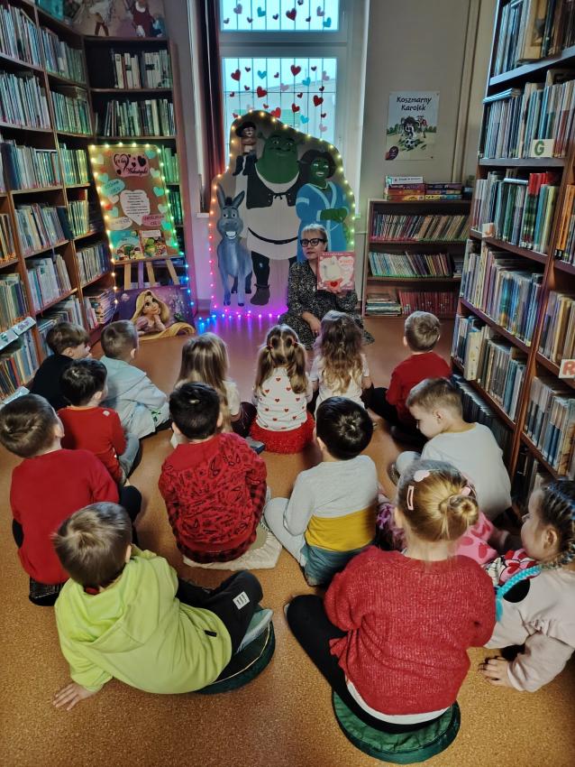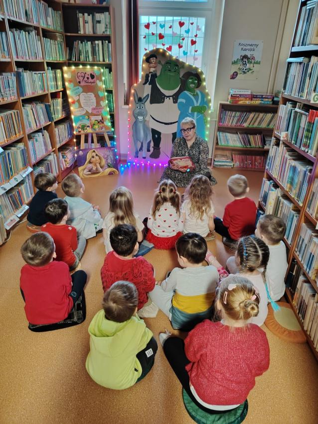 Grupa "Myszki" wybrała się na walentynkowe czytanie do Biblioteki.
